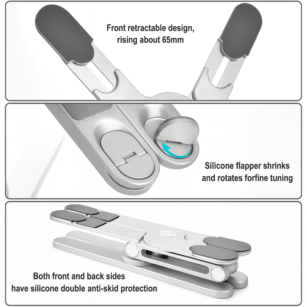 Experience comfort and flexibility with this Portable Aluminum Alloy Laptop Stand, engineered for users who need a stable, adjustable, and travel-friendly workstation. Built from premium aluminum alloy, the stand is lightweight yet strong, making it perfect for both home and on-the-go use.